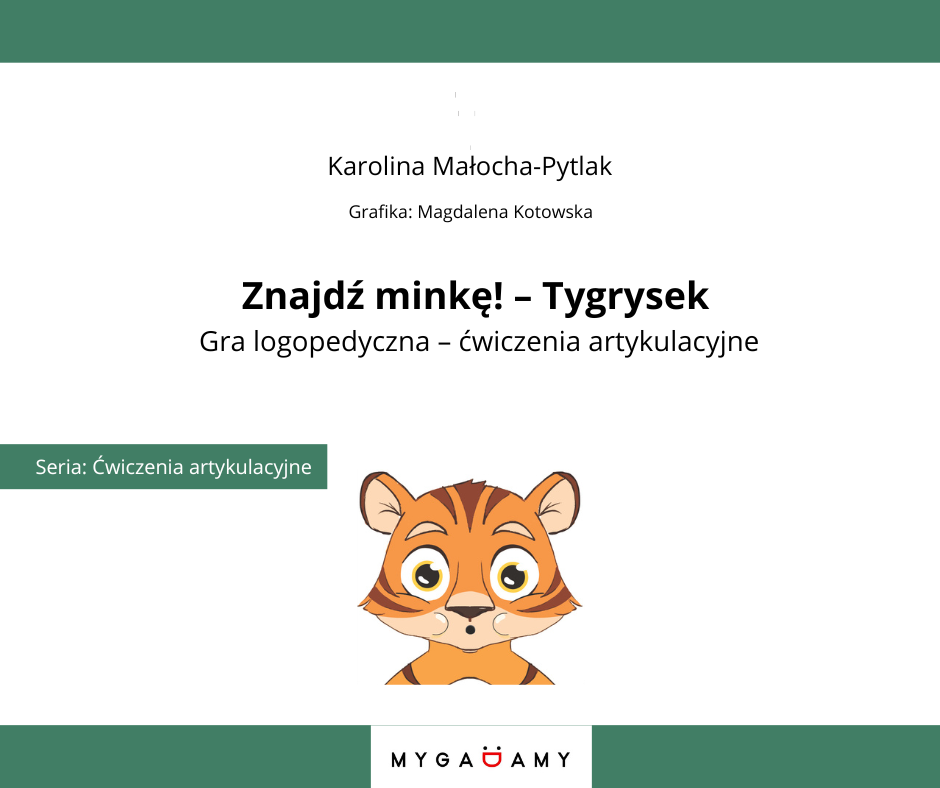 Materiał „Znajdź minkę! – Tygrysek” wykorzystuje formę gry typu memory, aby zachęcić dzieci do wykonywania ćwiczeń artykulacyjnych. Podczas zabawy dziecko odnajduje pary kart z minkami tygryska, a następnie naśladuje przedstawione ruchy języka, warg lub policzków. Dzięki temu ćwiczenia artykulacyjne są wykonywane naturalnie podczas gry.